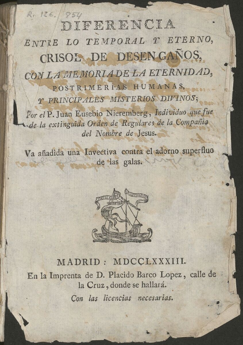 Diferencia entre lo temporal y eterno, crisol de desengaños, con la memoria de la eternidad, postrimerias humanas y principales misterios divinos