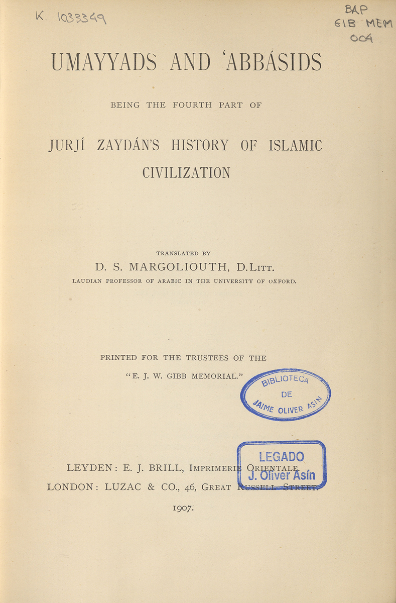 Umayyads and 'Abbásids : being the fourth part of Jurjí Zaydán's History of Islamic Civilization