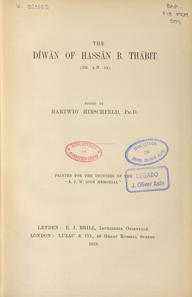 The Diwan of Hassan b. Thabit