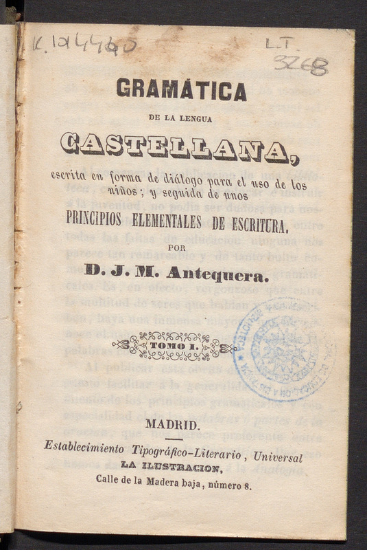 - Madrid : Establecimiento Tipográfico-Literario, Universal, La Ilustración : Imprenta del Diccionario Geográfico,