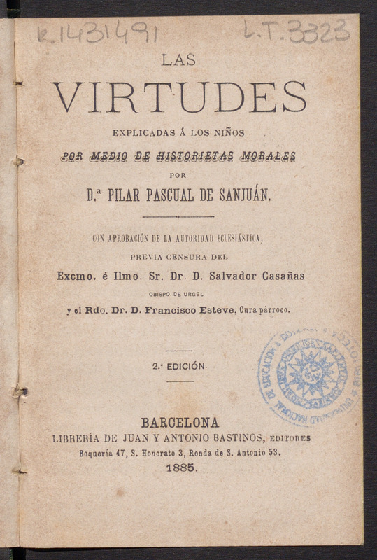 En port.: Con aprobación de la Autoridad Eclesiástica, previa censura del Excmo. é Ilmo. Sr. Dr. D. Salvador Casañas, obispo de Urgel, y el Rdo. Dr. D. Francisco Esteve, cura párroco- Identificador