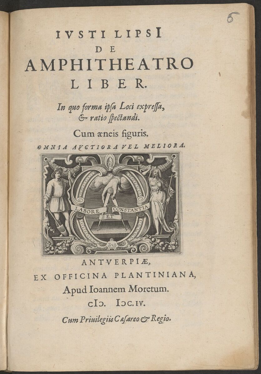 Iusti LipsI De amphitheatro liber : in quo forma ipsa loci expressa & ratio spectandi ... : omnia auctiora vel meliora