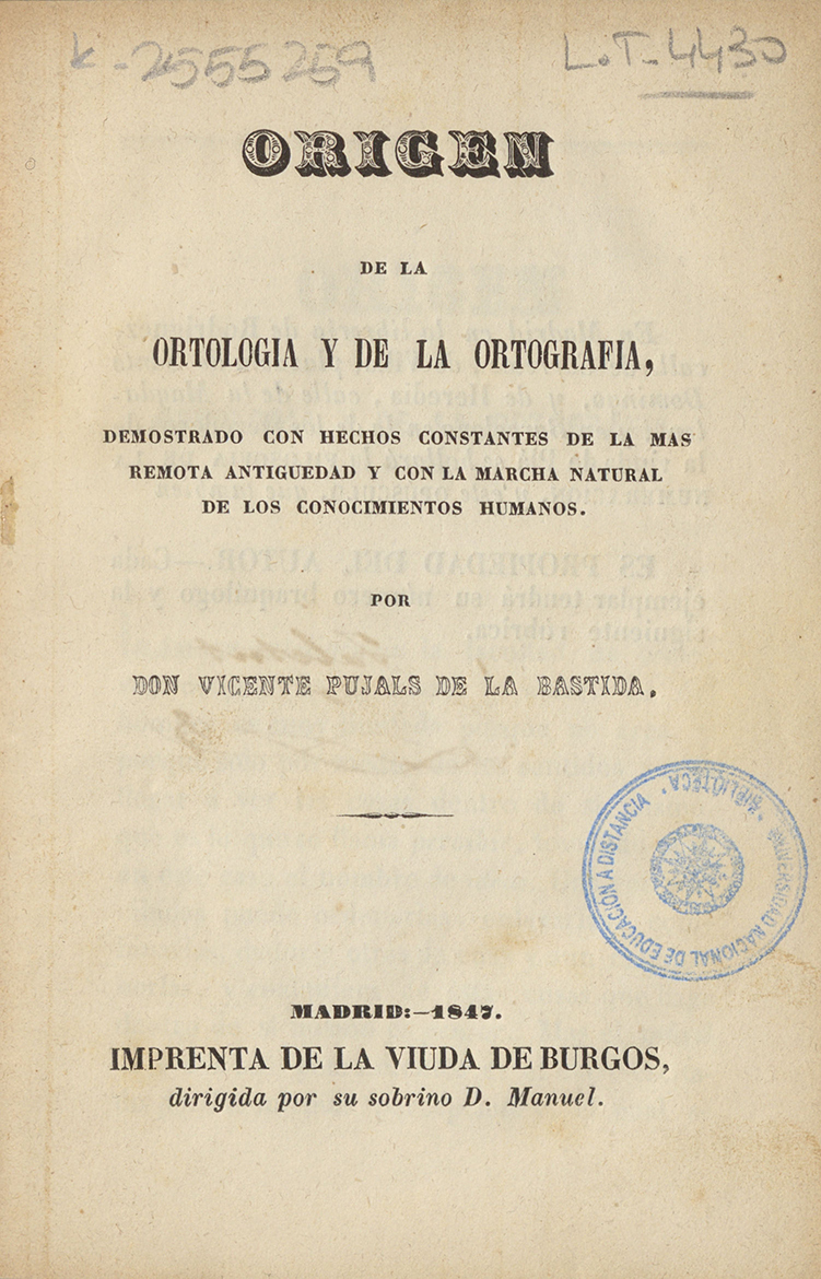 Orígen de la ortología y de la ortografía, demostrado con hechos constantes de la más remota antiguedad y con la marcha natural de los conocimientos humanos