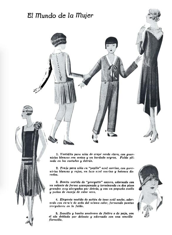 In the Spanish magazine Excelsior, there is a page dedicated to women’s fashion titled “El mundo de la mujer” or “the World of Women”. On this page various clothing articles are illustrated and described with a focus on material, color and design.