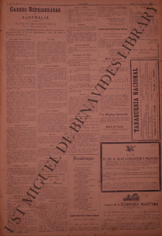 Trajano Mera, José. “Las gotas de agua”. Libertas, year I, num. 34, August 17, 1899, p. 3. In UST Miguel de Benavides Library.