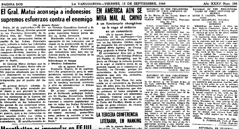 "En America Aun Se Mira Mal Al Chino.” La Vanguardia (Manila), year XXXV, num. 196, September 15, 1944, p. 2. In Open Access Repository @ UPD.